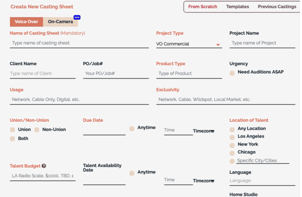 We charge a flat $350 per project. Within that project, you can cast as many voice-over roles as you need. For on-camera projects, up to 10 roles are included per project (and in practice, no one has ever come close to that limit).